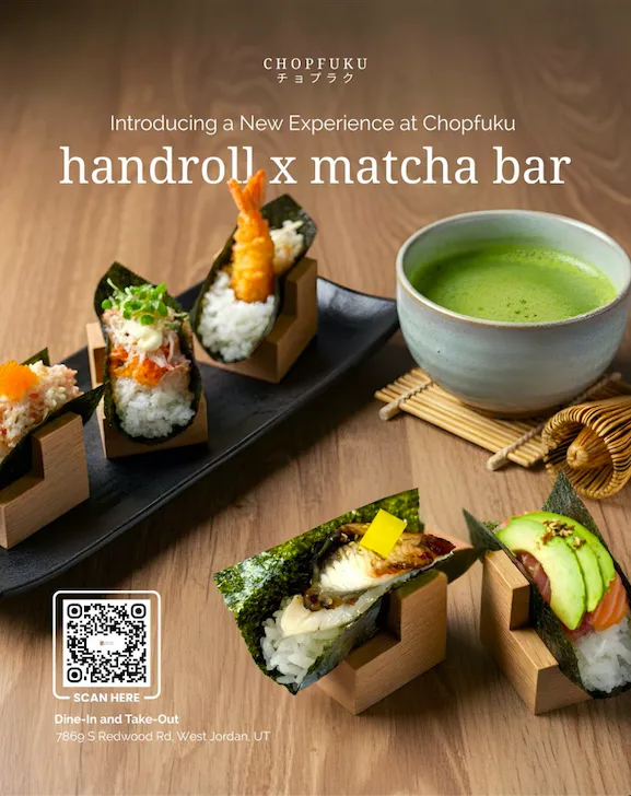 Handroll Studio x Matcha Bar. Freshly crafted sushi hand rolls are made to order by our talented chefs. Pair your hand rolls with our curated selection of premium matcha drinks for the perfect balance of flavor and refreshment. We invites you to enjoy the best of both worlds.